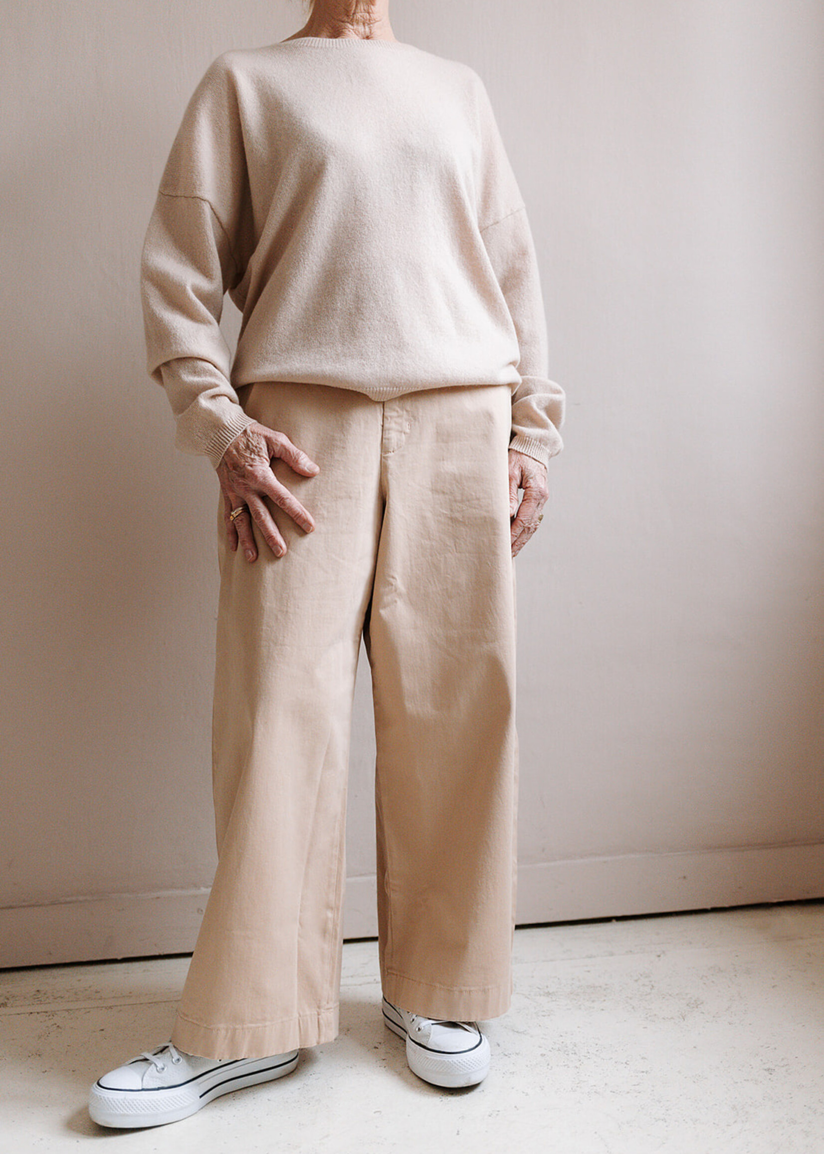 This sweater in soft 100% cashmere offers an oversized fit with a round neck and long sleeves. Featuring dropped shoulders, this cosy piece combines effortless style with comfort, making it a versatile wardrobe staple for any season.