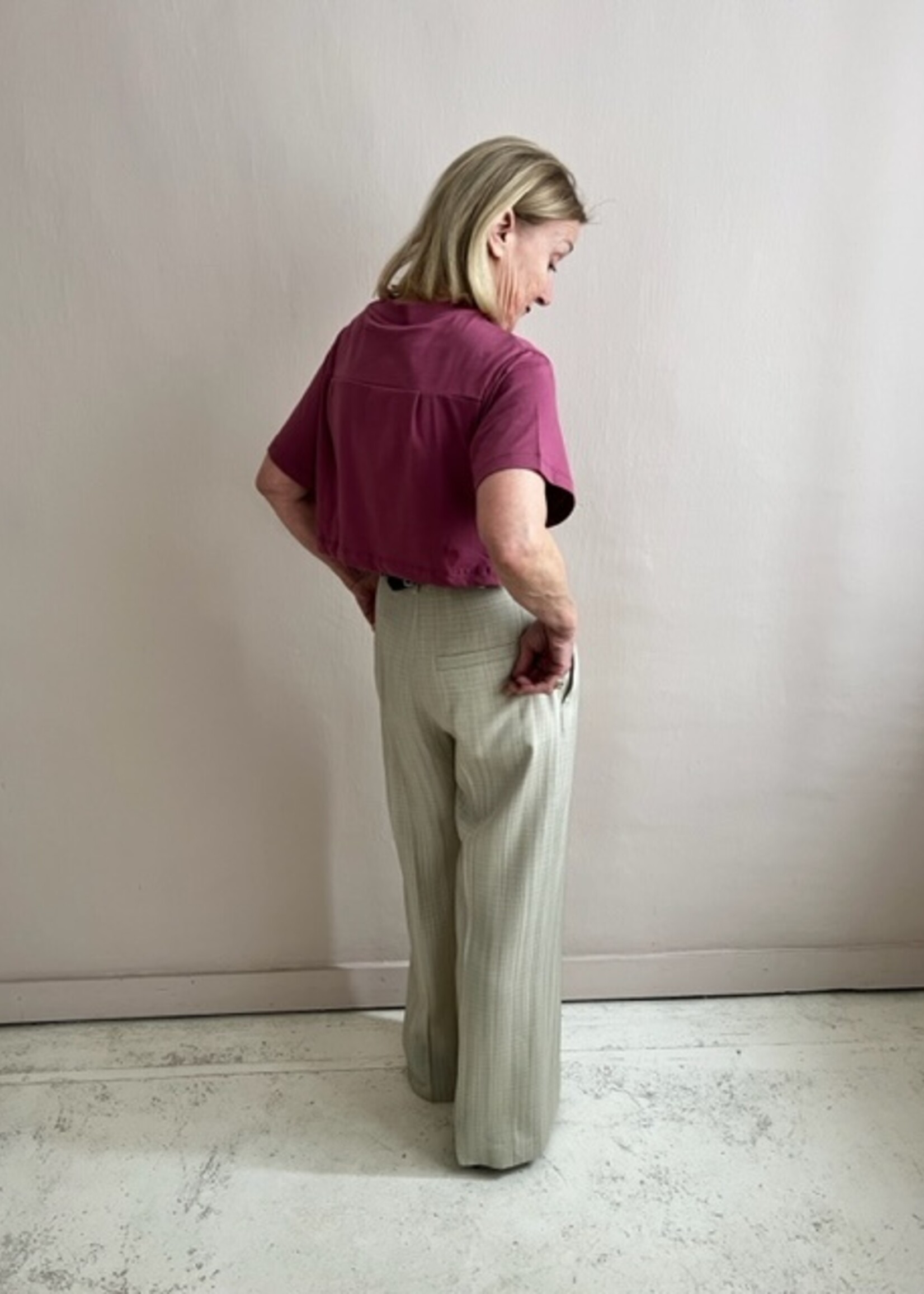short t-shirt with black elastic band at the back.